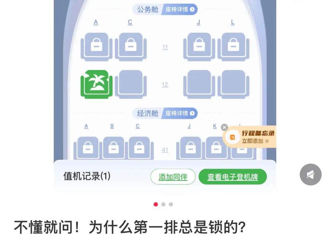 而现在安全原因并不能解释一切,航司动不动一锁一大片,甚至有人发现,连公务舱都锁。