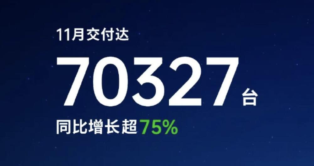 零跑汽车11月交付量达7.03万台,同比增长超75%,连续两月站稳7万量级。