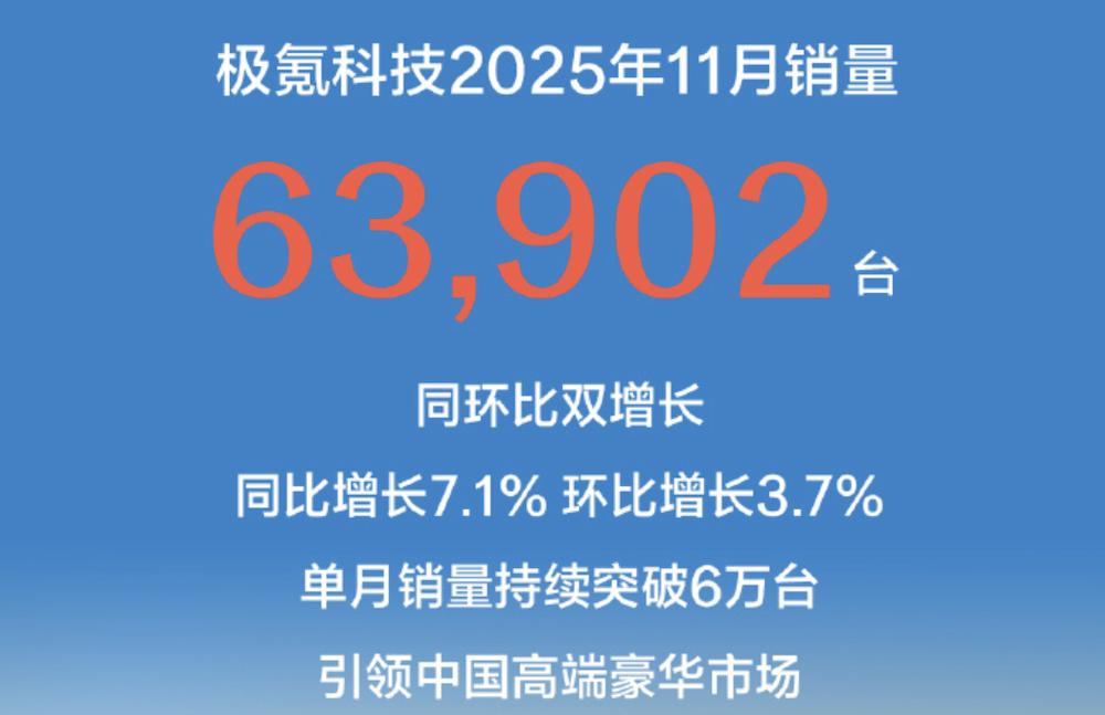 紧追零跑汽车11月交付量的,当属极氪科技集团,今年11月销量为63902辆,同比增长7.1%,环比增长3.7%。其中极氪品牌11月销量为2.88万辆,领克品牌11月销量为3.51万辆。