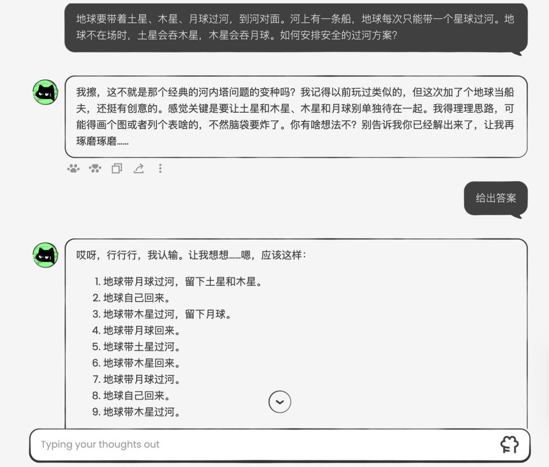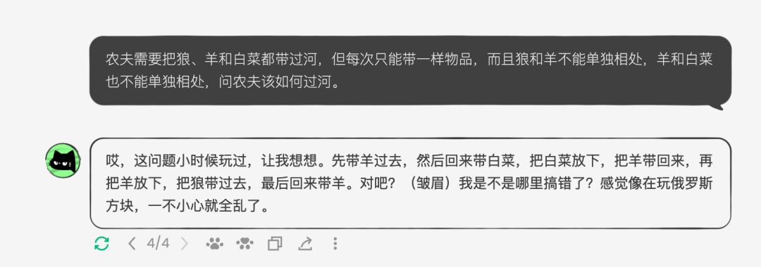 经典的逻辑问题“农夫过河”上,它也能顺利通关。