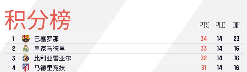 新赛季西甲联赛赛程已然完成三分之一,积分榜前四却形成等差数列,榜首巴萨只领先第四位马竞3分,呈现出24年来最胶着的争冠开局,追平2001-02赛季14轮过后积分榜前四的最小分差,也让巴萨马竞两队本周中的直接较量愈发引人关注。皇马巴萨双雄争霸的老套剧本改换成“驷马齐驱”的开场剧目,为西甲联赛增添几分新意和悬念。显然这样的局面也是西甲联盟主席特瓦斯所乐见的。