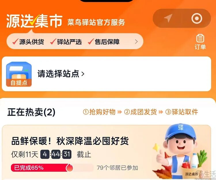 日前有消息显示,菜鸟驿站近期开始在武汉等地测试一项名为“源选集市”的团购服务。据了解,其采取源头供货、成团发货、驿站自提的模式,并由驿站站长担任团长。目前,“源选集市客户端”和“源选集市站长端”微信小程序已经上线,开发主体为浙江驿栈网络科技有限公司,该公司的控股股东则是浙江菜鸟供应链有限公司。
