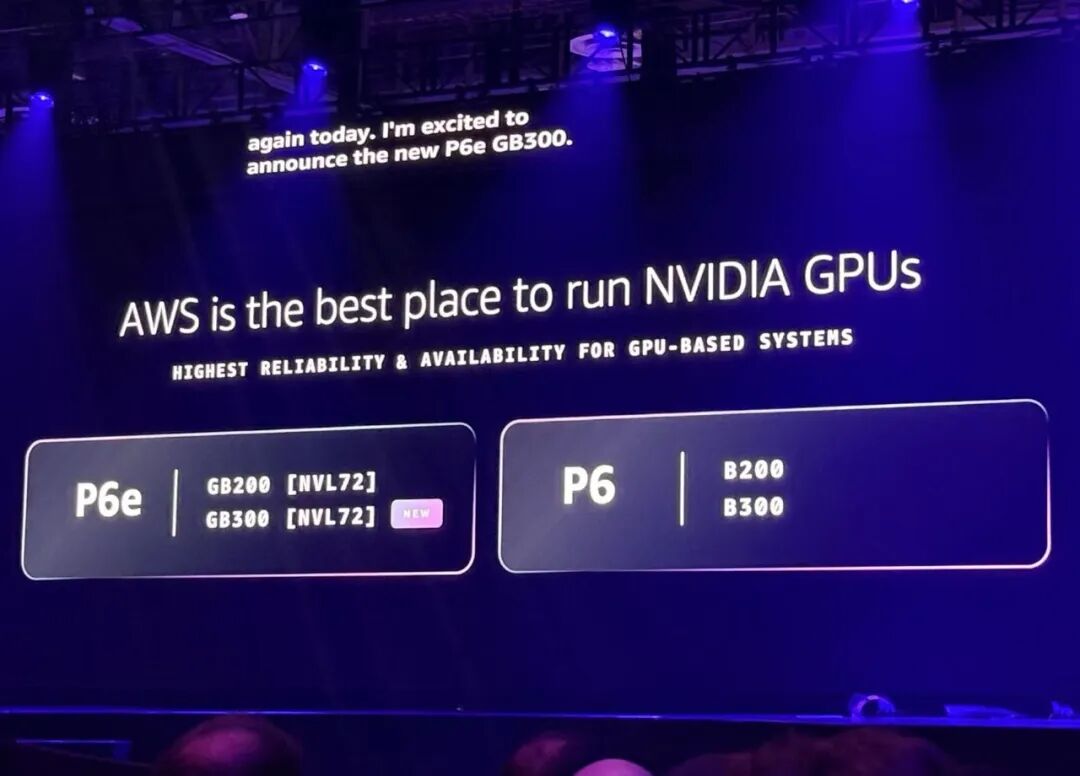 今天,亚马逊云科技新发布采用英伟达最新的GB300 NVL72系统的P6e-GB300,相比P6e-GB200,新实例GPU内存容量提升至1.5倍,FP4计算性能(无稀疏)提升至1.5倍。