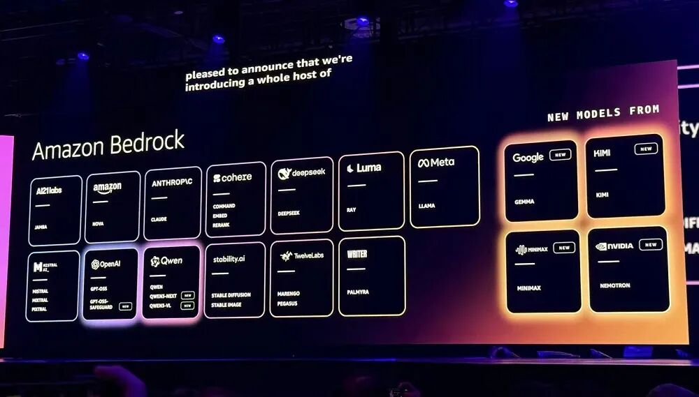 亚马逊云科技一直以来的信条就是“选择至关重要(Choice Matters)”,这也适用于模型的选择。加曼称,亚马逊云科技认为AI的未来不会仅由1个模型统治,过去1年,Amazon Bedrock上提供的模型数量已经翻倍,DeepSeek、Qwen等中国模型也在支持范围之内。