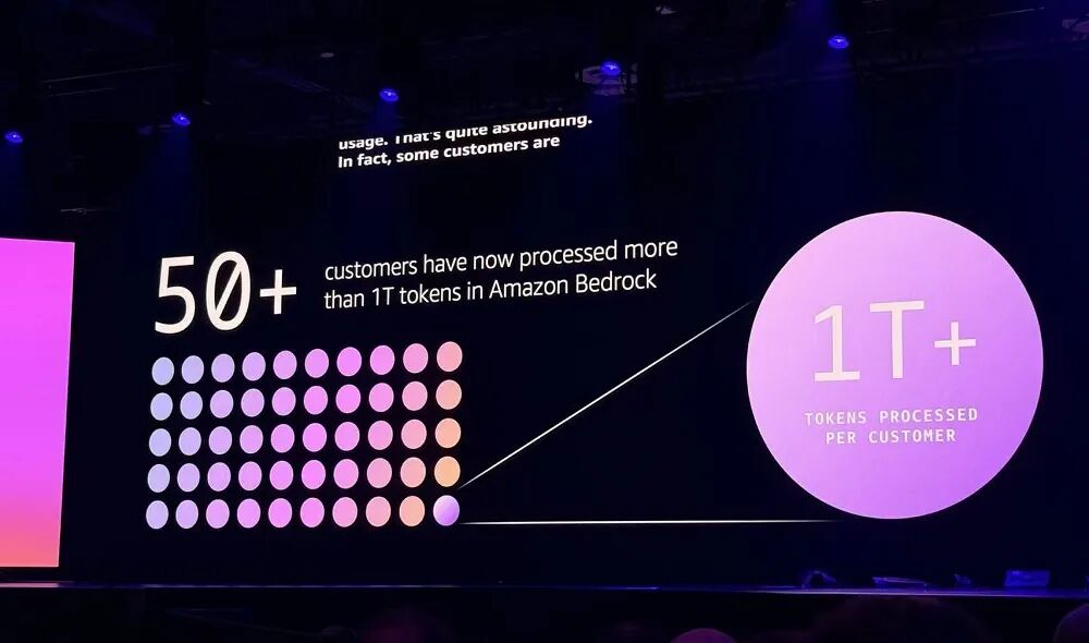 亚马逊云科技Amazon Bedrock推理平台已经拥有超过10万客户,使用其处理超1万亿个token的企业客户已超过50家。