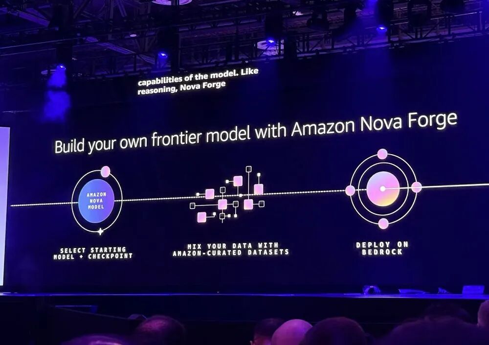 7、Amazon Nova Forge服务:支持企业访问Nova模型在不同阶段的训练检查点,并将自有数据与亚马逊的训练数据集混合,构建定制前沿模型。