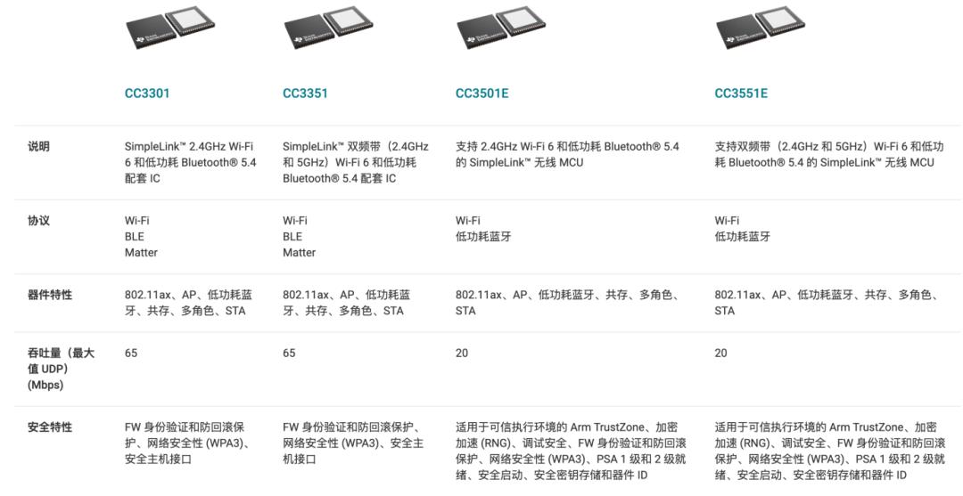 10年来,TI一直担任CSA董事会成员,并参与了Matter的开发。此外,TI还是Thread Group 的贡献会员、Wi-Fi联盟成员,拥有20多年的连接领域经验。其支持Matter的Thread产品包括CC2674x10、CC2755x10、CC2652x。兼容Matter的TI Wi-Fi的产品包括CC3301、CC3351、CC3501E、CC3551E。