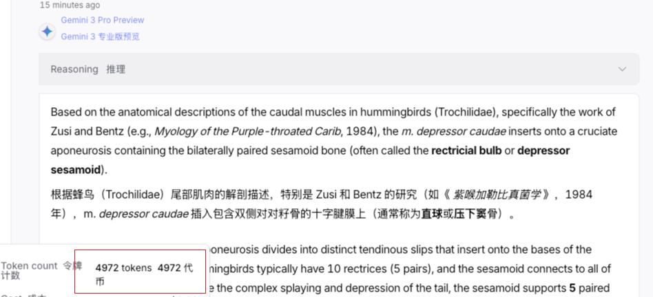 但谷歌这边,5000 个 tokens 不到,给我干掉了 0.06 刀?这块要比 DeepSeek 高了有 20 倍了。