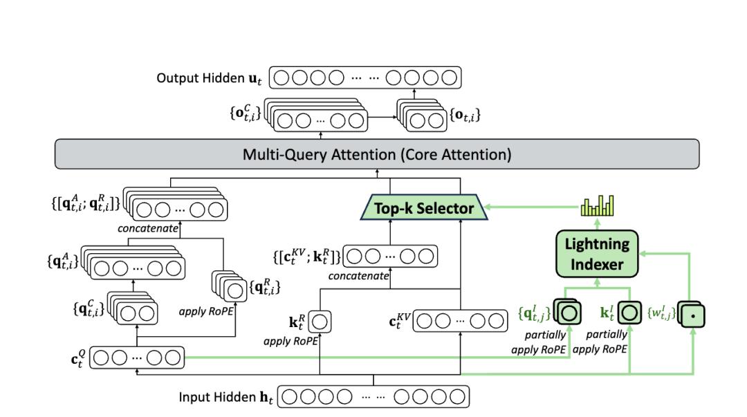 这东西在之前的 V3.2-EXP 版本里出现过,当时只是测了一下 DSA 会不会影响模型的性能,现在是真的把这玩意给放到了主力模型上。
