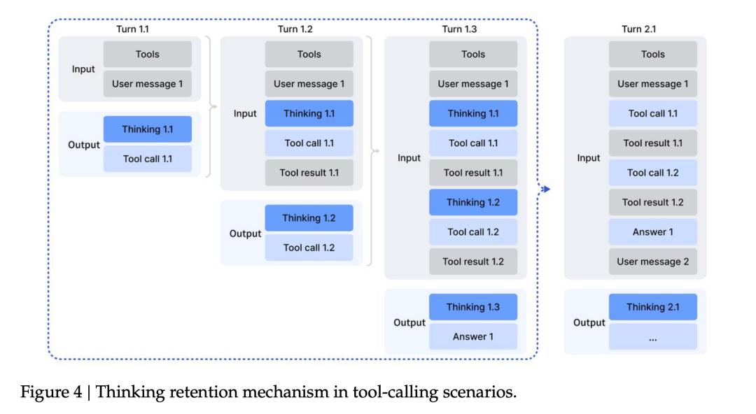 现在的规则变成:在一整串工具调用的过程中,模型的“思考过程”会一直保留下来,只有当用户发来一条新的提问时,才会重置这一轮推理;而工具的调用记录和结果,会像聊天记录一样一直留在上下文里。