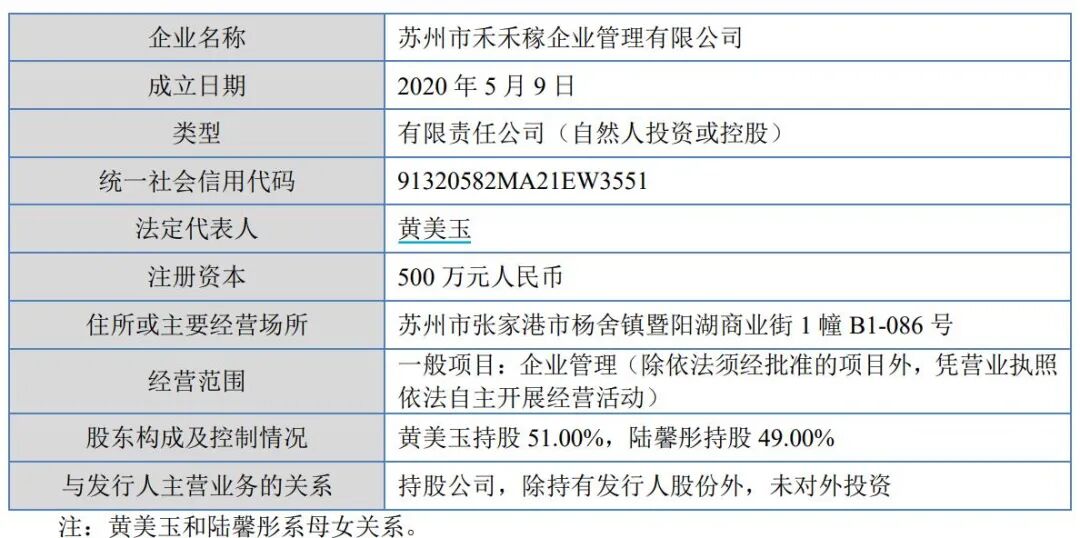 截至目前,陆强和黄美玉两人直接持有和控制爱得科技共计79.07%的公司股份,二人为公司控股股东及实际控制人。此外,天眼查信息显示,陆强和黄美玉之女陆馨彤还通过苏州禾禾稼间接持有爱得科技2.59%的股份。