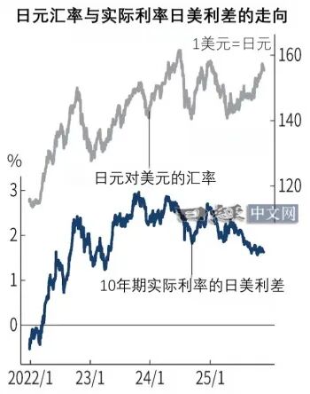 此外,投机资金可能正在加速抛售日元。酒井基成关注的是10年期实际利率的日美利差,该利率通过长期利率减去盈亏平衡通胀率(BEI)计算得出。此前多数情况下,实际利率的日美利差与美元兑日元汇率一直联动。近年中的例外是2024年夏季,当时投机资金的抛售行为尤为突出。