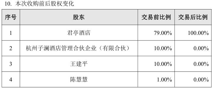 而出售上述股权的交易对象分别为杭州子澜酒店管理合伙企业(10%股权)、王建平(10%股权)和陈慧慧(1%股权)。