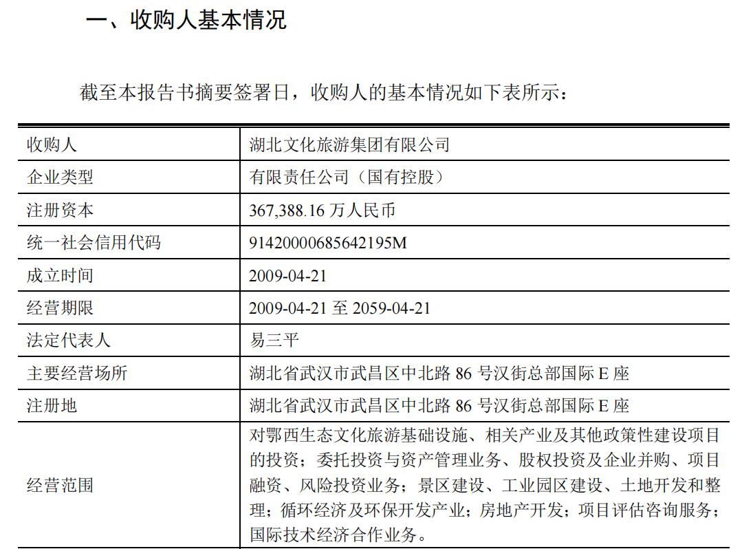 湖北文旅以每股25.71元的价格,受让吴启元、从波、施晨宁持有的58,315,869股无限售流通股,占公司总股本的29.99%。