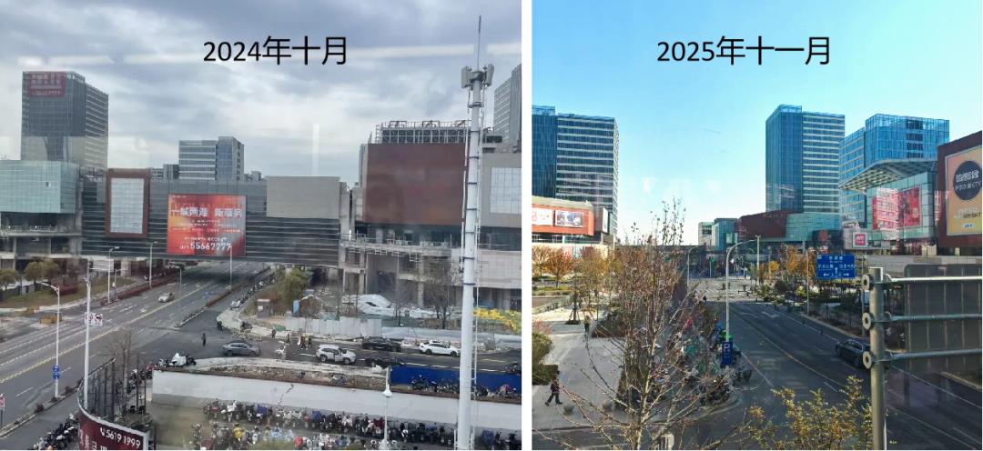 偏远、房屋较旧、出站即是电动车、自行车海洋。但有一类首末站是真的变终点成中心,以TOD重塑郊区环境。除了上班,日常生活基本可以扎根在终点站。最为明显的就是美兰湖。出站就接商圈,回家的路也变得比较丰富且有安全感。一年前的美兰湖处于半工地状态,周边的入住率也比较低。如今再去的时候能感觉到明显的变化:公共区域干净整洁,雕塑小品质量较高,绿化审美在线;室内装修风格简洁干净;招商风格年轻化,整体氛围活泼。