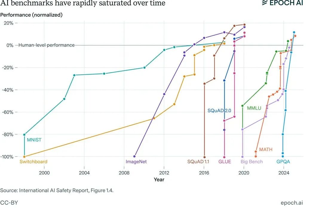 在某些基准测试上,AI已经接近饱和。
