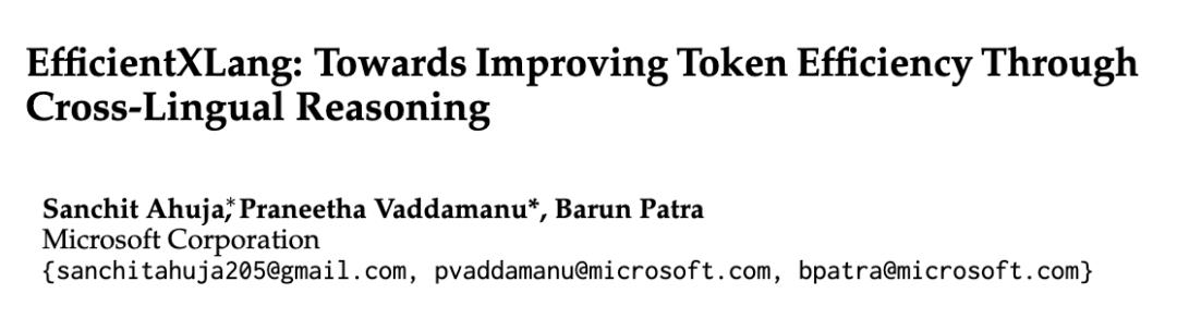 一篇来自微软的论文《EfficientXLang: Towards Improving Token Efficiency Through Cross-Lingual Reasoning》发现,使用非英语语言进行推理不仅减少了 Token 消耗,还能保持准确性。即使将推理轨迹翻译回英语,这种优势依然存在,这表明这种变化源于推理行为的实质性转变,而非仅仅是表层的语言效应。
