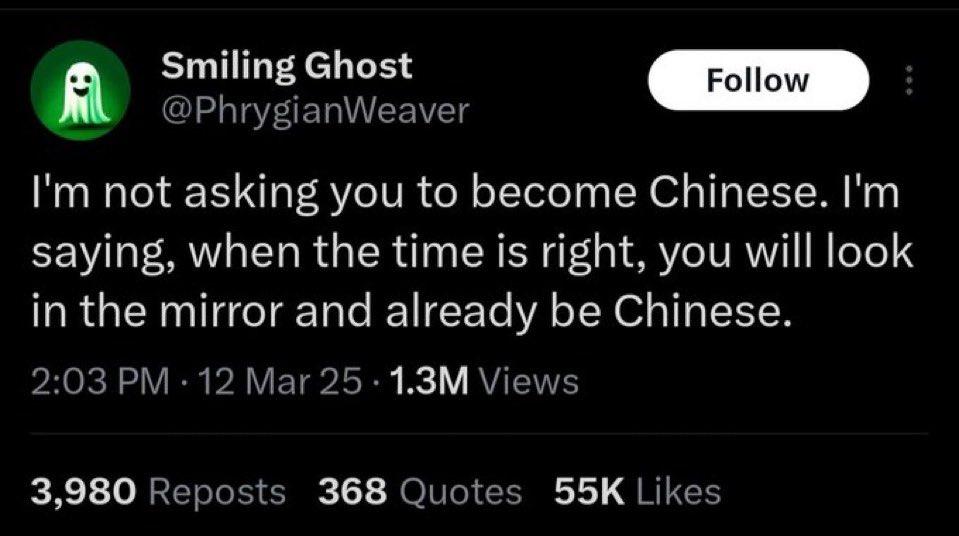 说不定有一天,我们能够像海外友人自嘲一样笑话大模型:「我并不是要你变成中国人。我是说 —— 当时机成熟时,你照照镜子,就会发现自己早已是中国人了。」
