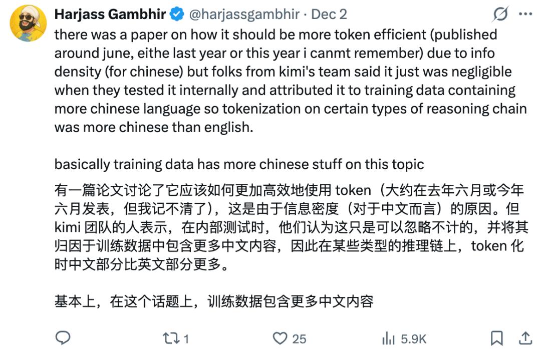 所以评论区的第二种观点:「训练数据中包含更多中文内容」,似乎更加合理。