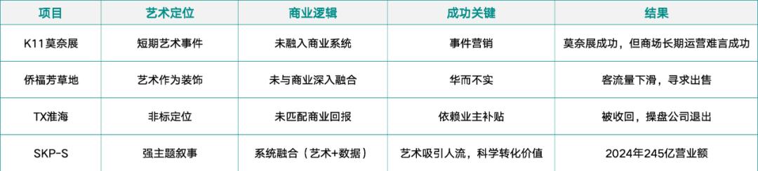 商业中引入的艺术,能产生正面效应,但效应的持续性取决于其与商业逻辑的融合深度,而非简单的“艺术+商业”叠加。目前所有以导入某种元素但仅仅停留在该元素上,而没有形成商业经营底层逻辑自洽的商业,或早或晚都会走到这个境况中。