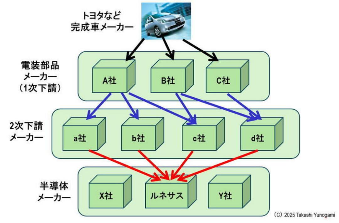 正如目前所见,瑞萨电子中工厂在2011年3月11日的日本大地震中受损,导致丰田普锐斯停产。此外,2021年初,台积电集中生产的28纳米汽车半导体出现供应短缺,迫使日本、美国和德国的主要汽车制造商暂停生产。而现在,由于荷兰公司安世半导体停止向汽车分立半导体供货,许多汽车制造商被迫暂停或减产。