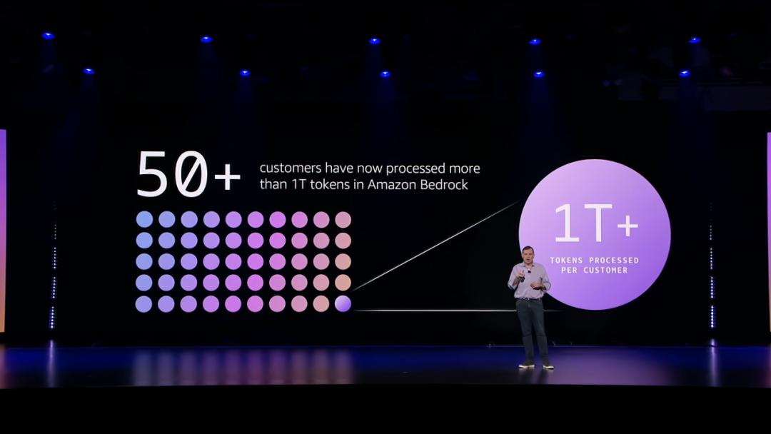 他的判断基于一组反差强烈的数据:一方面,生成式AI引发全球狂欢,Amazon Bedrock已服务超过10万家企业,其中50多家客户处理了超1万亿tokens;另一方面,许多企业仍未看到AI投资带来相匹配的业务回报。