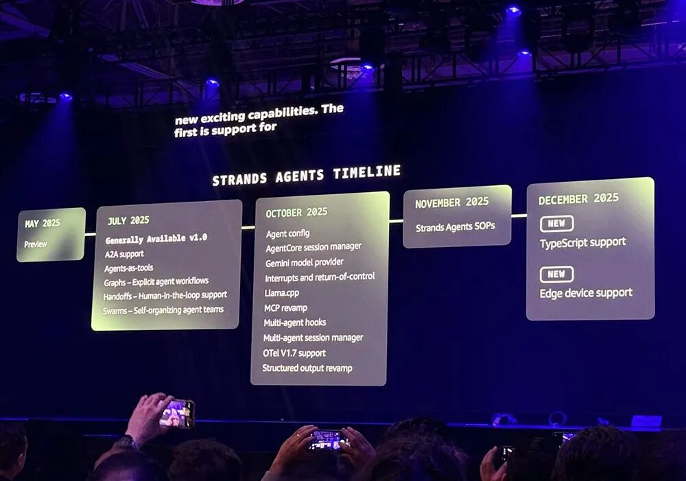 Strands Agents SDK智能体框架新增对TypeScript和边缘设备的支持,让智能体构建更轻松,并拓展至更广泛的汽车、游戏、机器人等边缘领域。