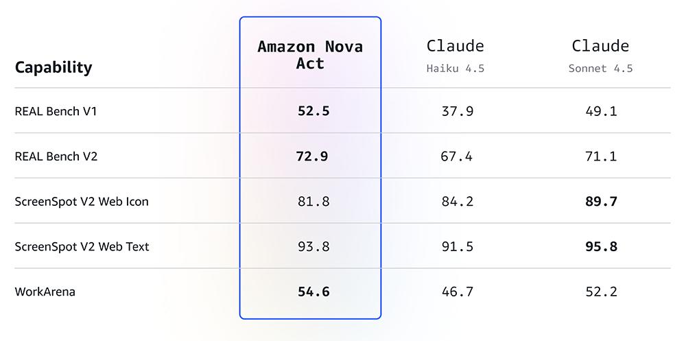 Amazon Nova Act基于定制的Amazon Nova 2 Lite模型,能够出色地驱动浏览器、支持API调用,并在必要时将问题升级至人工处理。该服务具备Web质量保证(QA)测试、数据录入、数据提取和结账流程等核心功能。