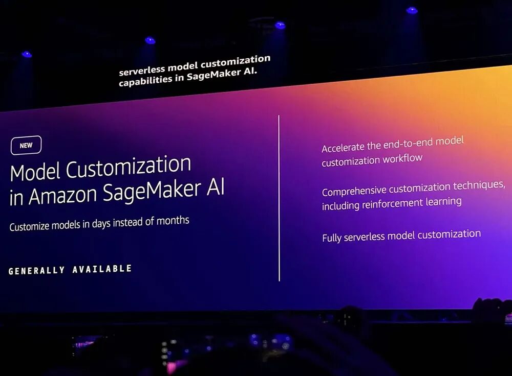 Amazon Bedrock全托管AI平台新增强化微调功能,提供自动化微调能力;Amazon SageMaker AI平台新增模型定制功能,支持深度底层调整,简化高效AI的构建流程。