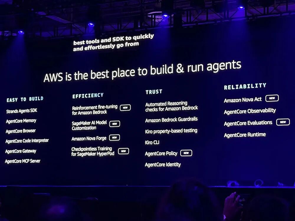 智东西拉斯维加斯12月3日报道,在年度云计算盛会AWS re:Invent大会上,AWS Agentic AI副总裁Swami Sivasubramanian发表主题演讲,详细阐述为什么是亚马逊云科技(AWS)构建和运行智能体的最佳选择,并发布多项智能体(agent)开发新工具。