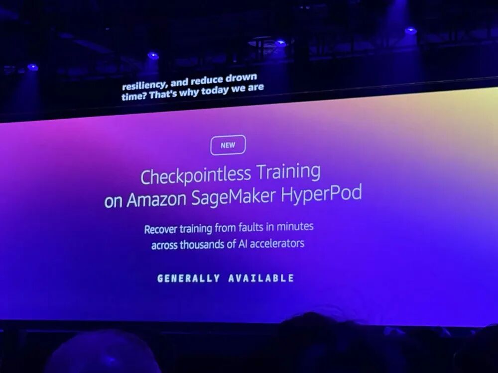 Amazon SageMaker HyperPod新增的无检查点训练功能则实现了大规模、低成本的训练,整体目标是最大化客户在生产环境中这些工作负载的价值和投资回报率(ROI)。