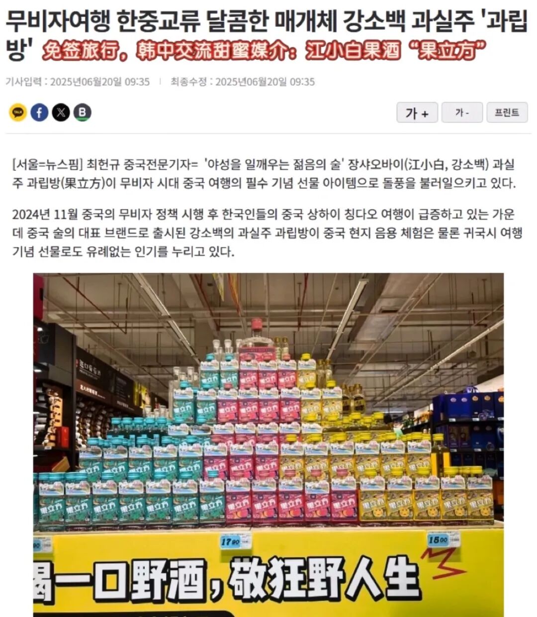 后来者如江小白和它的子品牌果立方,几乎踏着完全相同的路径登陆韩国——从成为往来旅客的热门伴手礼,到铺展开Emart、乐天超市、便利店等主流零售渠道,最终通过社交媒体上的流行趋势,悄然进入年轻人的生活场景中。烟台古酿通过与中国美食的搭配,迎来了自媒体时代的第二春。而江小白和果立方则几乎是奠定了中式便利店调酒的核心玩法,通过更轻量更好玩的饮酒方式,让白酒卸下了在传统场景中的“文化重担”,向更多潜在的年轻消费者敞开怀抱。