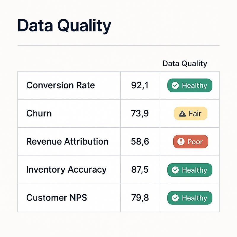 您的团队需要在工作流程中了解数据的质量和上下文。透明度不仅仅体现在文档记录上,更重要的是让数据质量在实际使用数据的地方清晰可见。这有助于发现最大的问题,并促进就优先级排序展开有效的讨论。