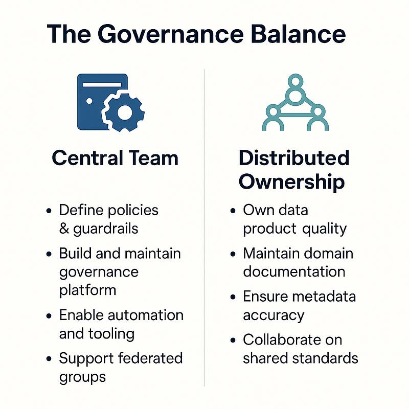 治理的转变在于从把关式治理转变为赋能式治理。我热爱治理领域的原因在于,如果设计得当,就能与最终用户携手合作,并在解决他们的问题中发挥关键作用。目标是在确保数据质量和信任的前提下,实现数据和数据访问的民主化。如果中心化团队主导治理,而分散化的团队却在执行工作,那么治理必然会失败。