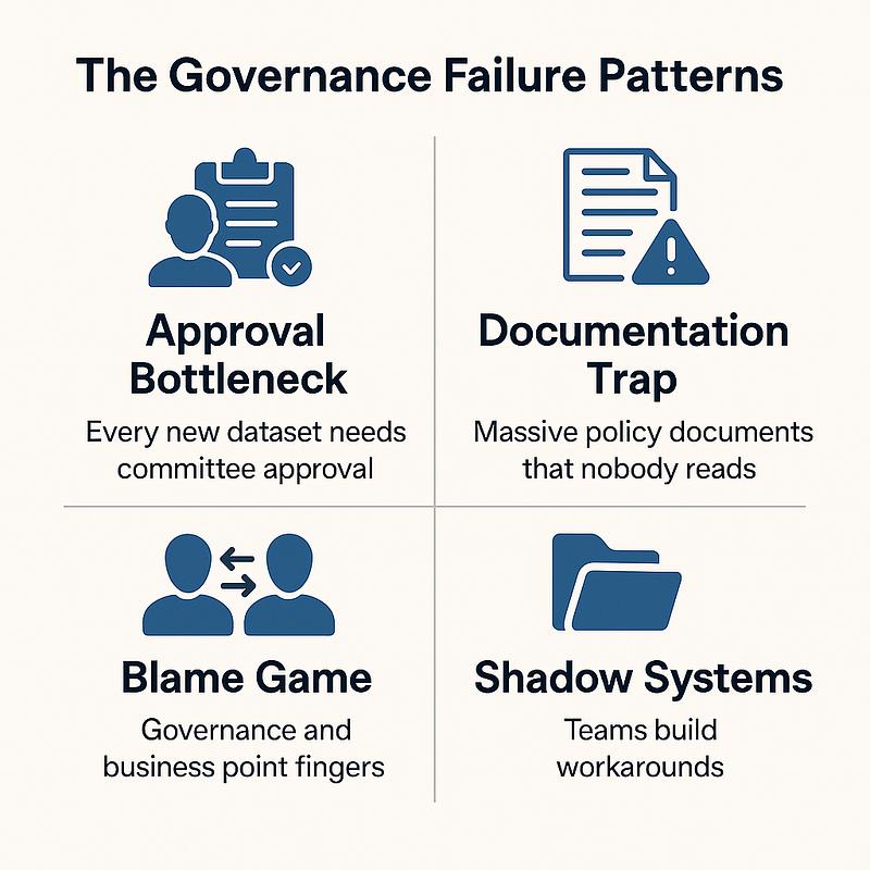 随着我们开始扩大数据治理规模,我们陷入了几个典型的陷阱。这些失败模式在我们自己的组织中表现为典型的“发达国家式增长问题”: