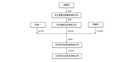 2018年2月,钱群山的姐姐钱群英通过股权转让交易,取得江苏吴中的控制权。具体交易路径是:苏州吴中投资控股有限公司(下称“吴中控股”)股东夏建平、阎政、罗勤、钟慎政、沈赟、金建平、金力与杭州复晖实业有限公司(下称“复晖实业”)于2018年2月2日共同签署了股权转让协议,夏建平等七人将吴中控股60.61%的股权转让给复晖实业,交易价格约为7.07亿元。彼时,吴中控股是江苏吴中的控股股东,持有上市公司17.01%的股权。股权关系上,钱群英通过浙江复基控股集团有限公司持有复晖实业80%的股权,钱群英是复晖实业的最大股东。