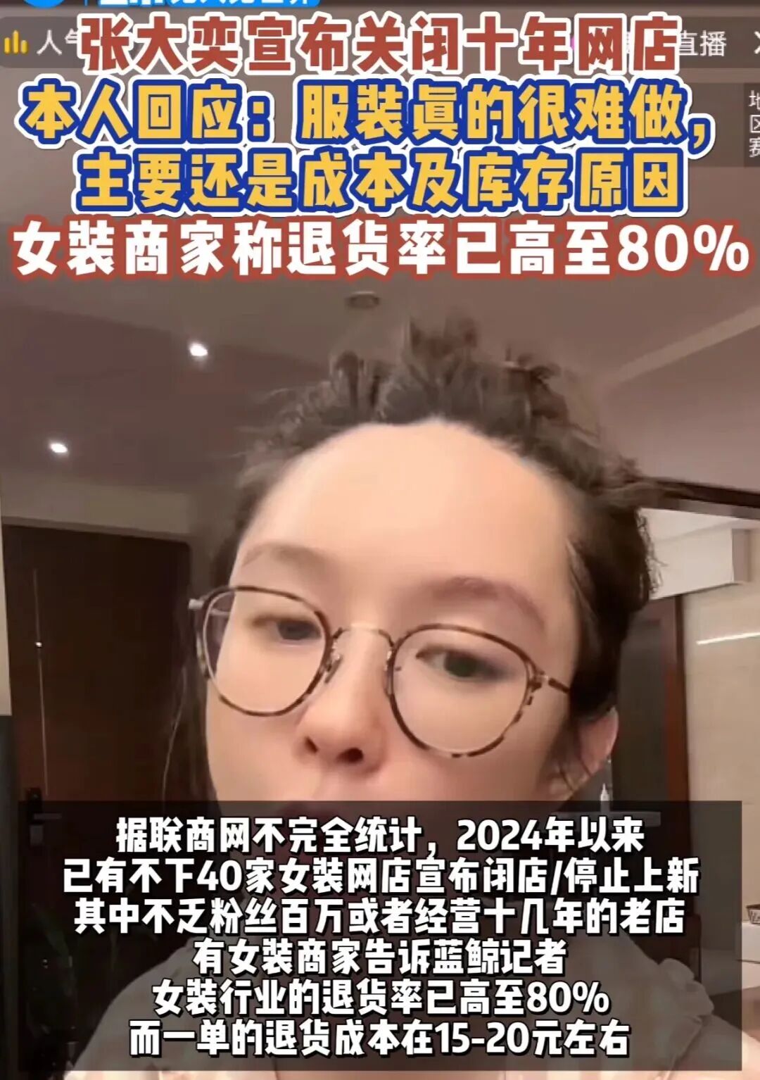 曾经的淘宝女装一姐张大奕,在关闭了自己经营了10年的店铺“吾欢喜的衣橱”之后,坦白了最终选择闭店的原因:还是库存。