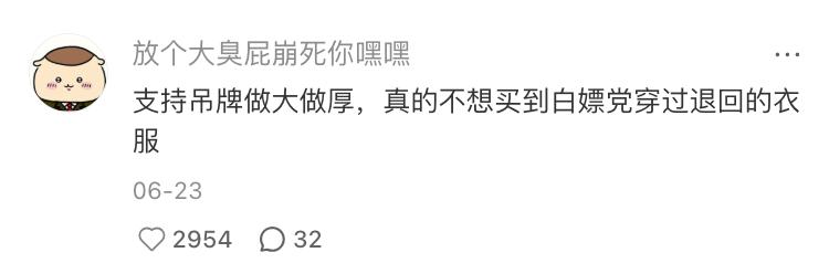 这浮夸的巨型吊牌,防的就是那些不剪吊牌、想靠“7天无理由退款”来白嫖新衣服的人。