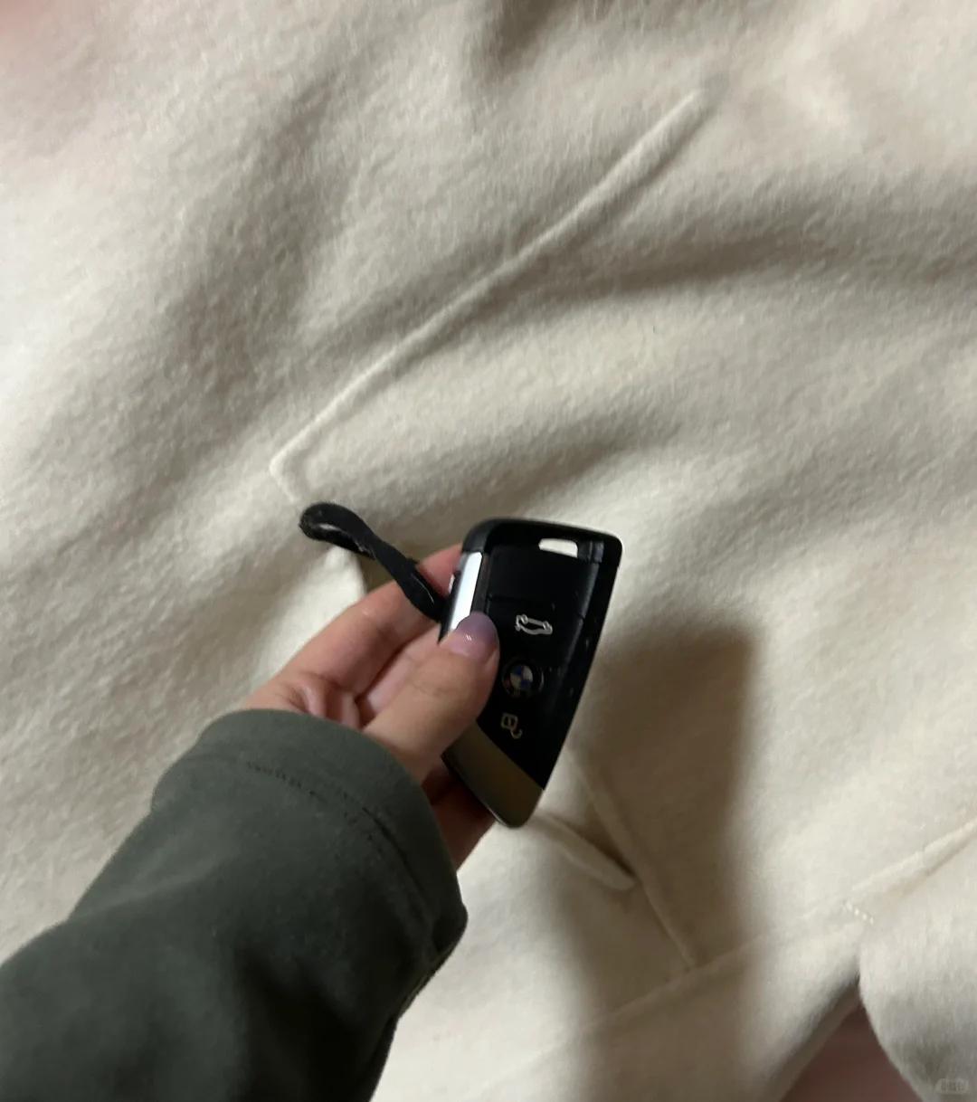 有人兴致勃勃穿上新买的大衣,随手就从口袋里掏出了一个车钥匙。