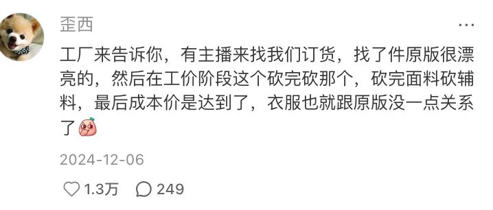 为了不让自己的吃相过于难看,服装又回到了大家最熟悉的价格战。品质参差不齐、版型图文不符,回头客已经不指望了,能赚一单就赚一单。