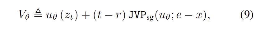 具体来说,iMF让用于计算复合预测函数V(代表对瞬时速度的预测)中,雅可比向量积(JVP)项所需的切向量输入不再是外部的e-x,而是由网络自身预测的边缘速度。