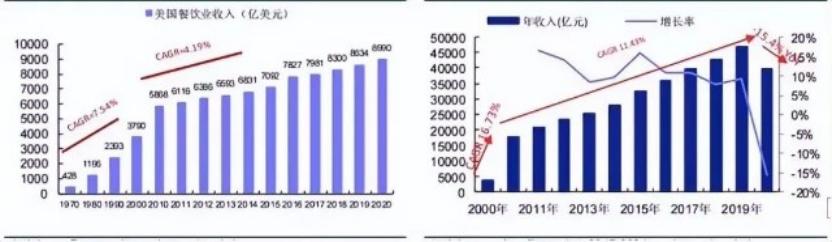 欧睿咨询统计,2001-2020年间,美国餐饮市场规模的复合年均增长率约为4.19%;而2010-2019年中国餐饮市场复合年均增长率高达11.43%。因此,中美两种模式有了各自的适配场景,美国的慢逻辑更适合成熟的存量市场,中国的快打法更适合仍在扩张的增量市场。