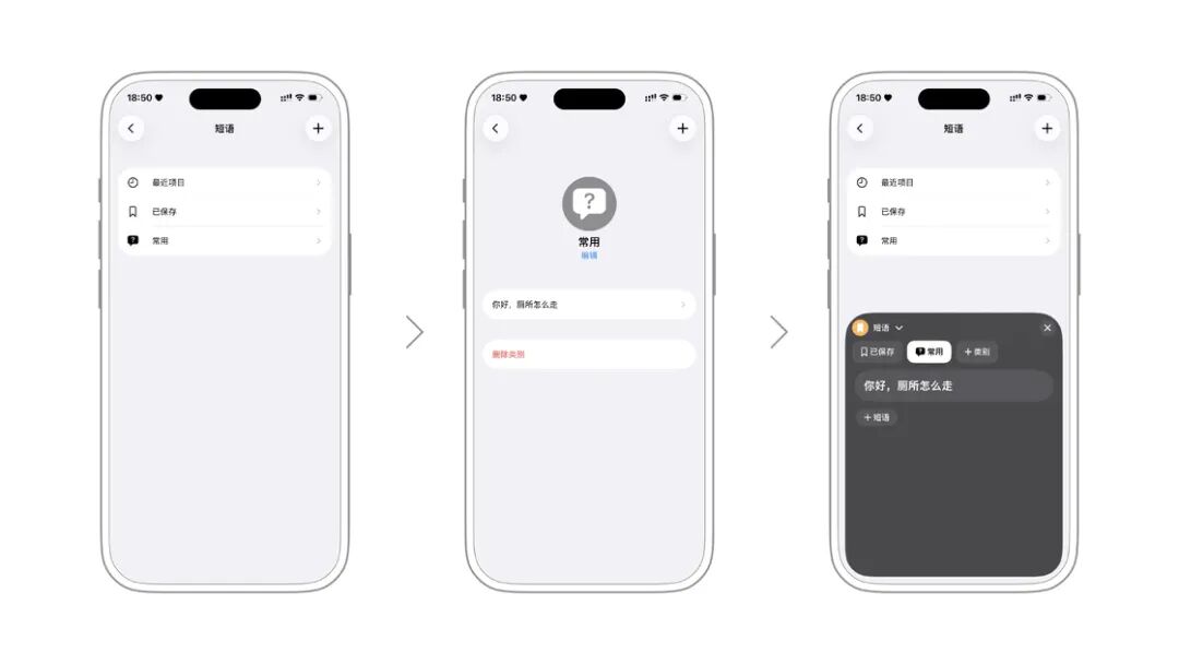 实时语音可以帮助无法说话的用户在需要的时候直接发声,在碰到问路、点菜等及时性较强的场景时,可以通过语音来便捷地达成目的。在辅助功能中打开实时语音,连续按三次侧边按钮即可显示「实时语音」窗口,通过键入内容,可以让系统的声音读出文字,系统声音可以切换成不同的人声音色。