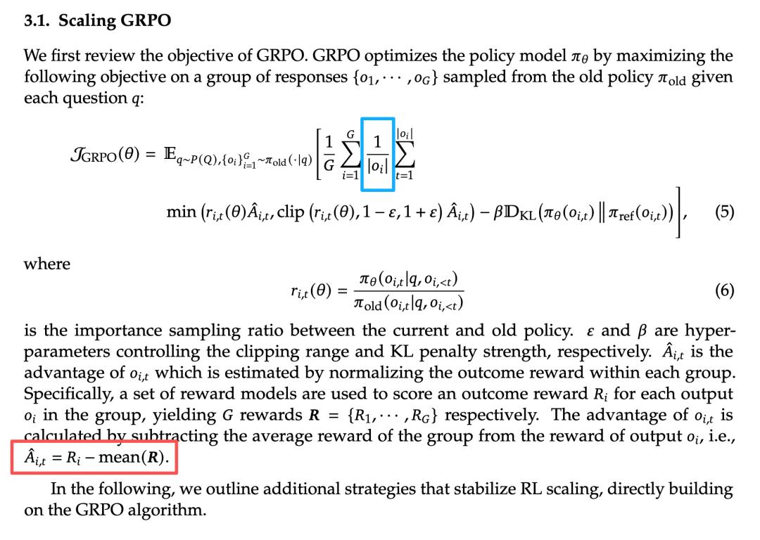 这会导致当某些问题的回报标准差较小,尤其是题目过于困难,几乎所有回报都为 0 的时候,在策略更新过程中将被赋予更大的梯度权重,忽视了那些难度适中的实际问题。