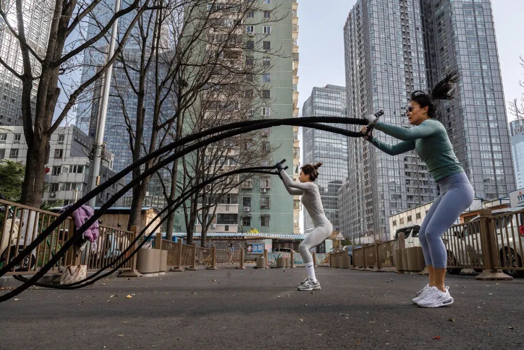两名女性在北京的街道上锻炼。(图 /CFP)