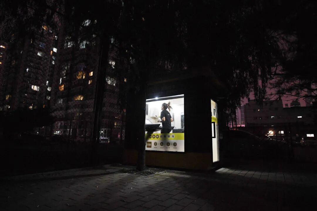 北京一名女性在住宅区的共享跑步机上跑步。(图 /CFP)