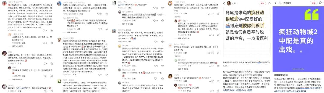 而持续发酵的《疯狂动物城2》中文配音争议,则将这种对“专业主义”的期待表现得更为具体。明星配音与专业配音演员之间的争论,本质是观众对创作过程中专业性的坚守。观众看到那些在真人影视剧中都需要配音"保驾护航"的明星跨界为动画配音时,自然会产生质疑。