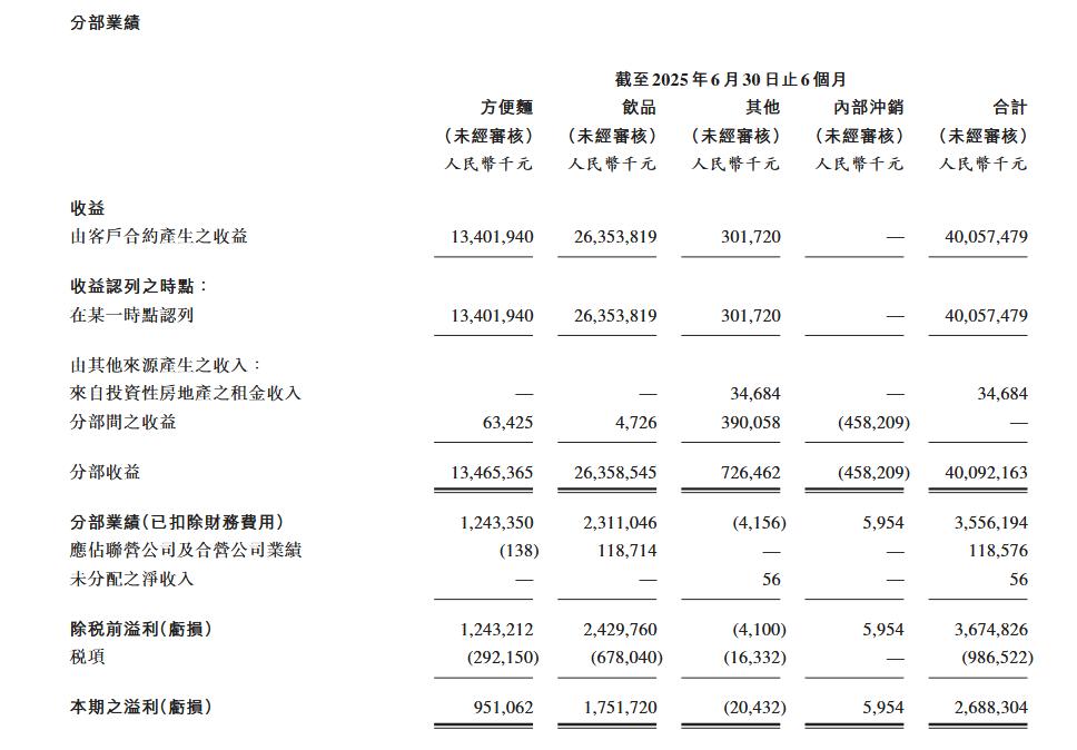 从财报数据来看,2025年上半年统一总营收约170.87 亿元,同比增长10.6%,净利润为12.87亿元,同比上升33.2%。其中饮品业务录得107.88亿元的收益,占总营收的63.1%,同比增长7.6%,是拉动集团增长的首要引擎。
