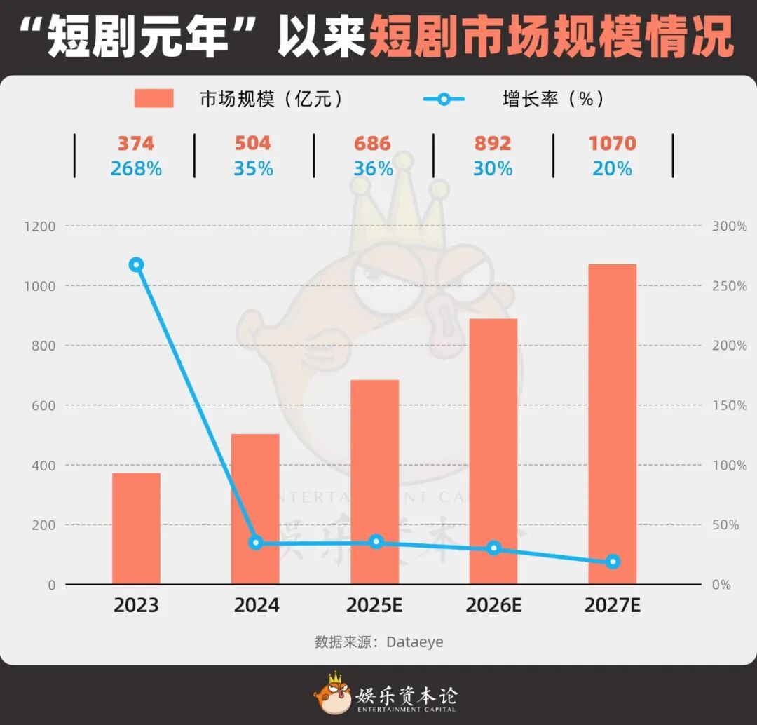 “短剧元年”以来短剧市场规模情况,数据来源:Dataeye