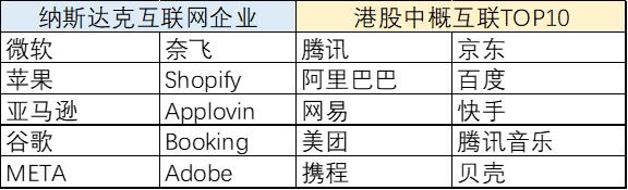 在展开分析之前,照例先统一数据口径。因本文主要围绕纳斯达克与港股上市的互联网企业展开,我们分别从两个市场中选取了市值排名靠前的典型标的,并剔除了相对偏上游的硬件供应商(如英伟达、AMD、小米等),具体纳入统计的样本如下图所示: